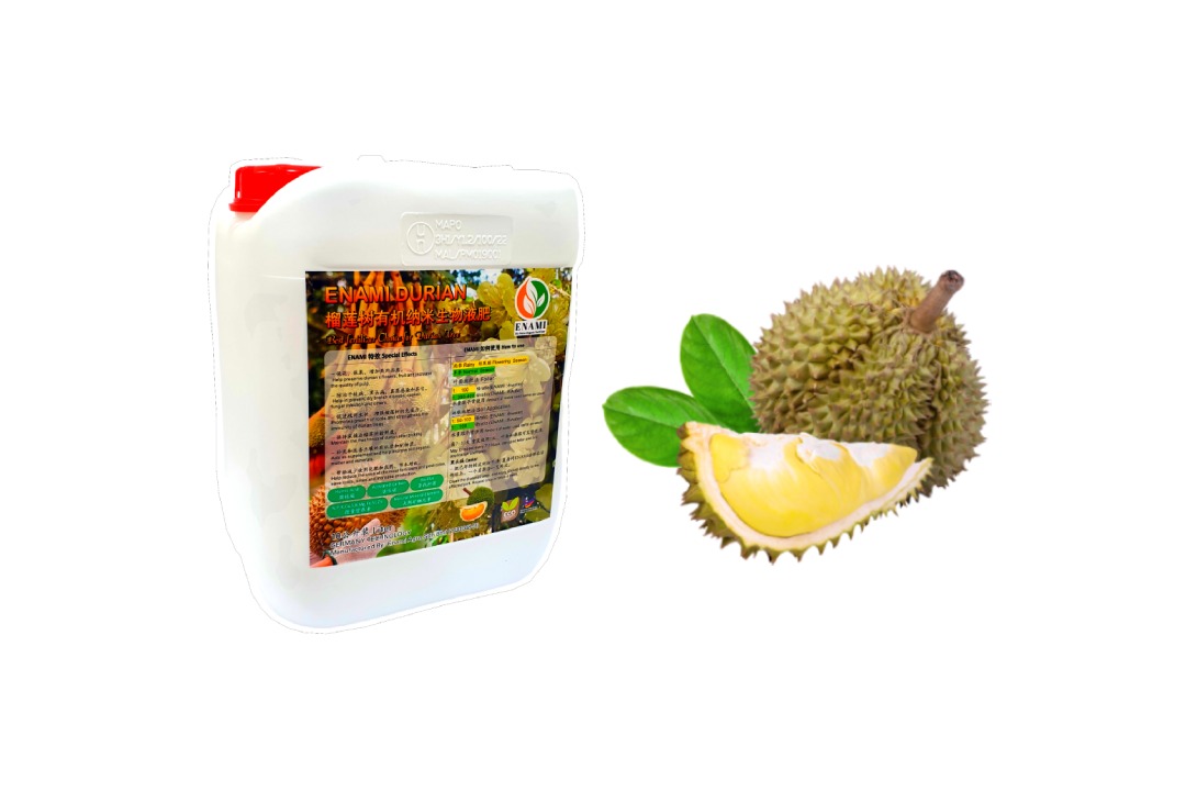 Enami Durian Product helps resolve and fortify the immune system. Preventing dry branches, root disease, and fungal infection, which therefore increase the rate of durian flowering and fruit formation, and protecting the flower and fruits.